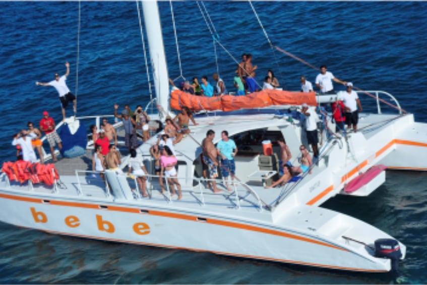 Starting Price: $2,360 (for up to 40 people). Big Grace is equipped with two large nets in front. Two bathrooms on each hull. Capacity of the boat up to 80 people. The boat has a retractable ladder that allows an easy access from the beach and from the water. Huge bar table inside that allows you a formidable lunch Buffet.
